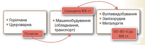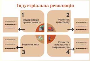 За допомогою матеріалів параграфа та додаткових джерел інформації доповніть інфографіку «Індустріальна революція в Україні».