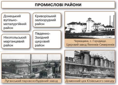 - 1. За назвами промислових районів Наддніпрянської України визначте провідні галузі промислового виробництва.
