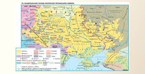 Проаналізуйте історичну карту. Визначте національний склад населення Наддніпрянської України.
