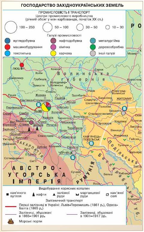 - 2. Які галузі промисловості розвивалися в західноукраїнських землях у другій половині XIX ст.?