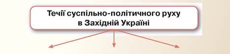 На основі аналізу тексту параграфа доповніть структурно-логічну схему «Течії суспільно-політичного руху в Західній Україні». Обговоріть результати роботи у класі.