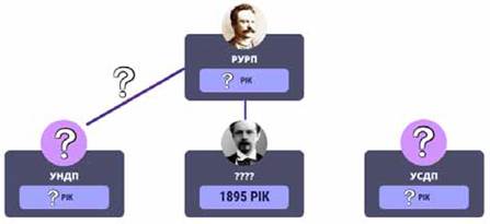 Проаналізуйте схему «Утворення українських політичних партій». Доповніть схему відповідними роками та історичними діячами.