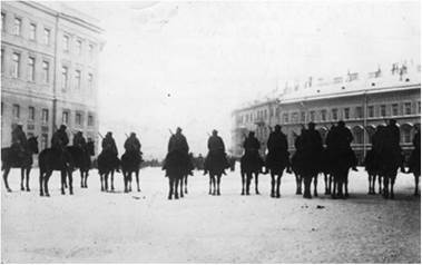 9 січня 1905 р. Кіннота біля Певчеського мосту затримує рух ходи до Зимового палацу