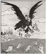 Політична карикатура на основі байки «Лебідь, рак і щука» («Іскра», 1906 р.)