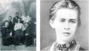 На відкритті пам’ятника І. Котляревському, 1903 р., Полтава. Зліва направо: М. Коцюбинський, В. Стефаник, О. Пчілка, Леся Українка, М. Старицький, Г. Хоткевич, В. Самійленко
