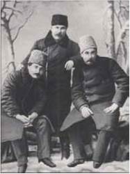 Брати Тобілевичі (зліва направо: Микола Садовський, Іван Карпенко-Карий, Панас Саксаганський). Їхня діяльність склала цілу епоху життя національного театру України.