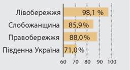 Частка українців у національному складі земель підросійської України на початку XIX ст.