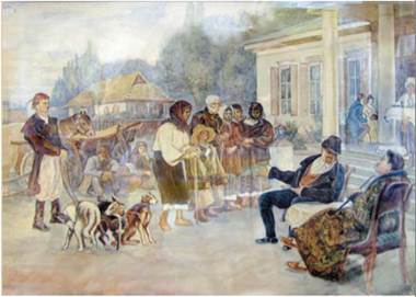 Проаналізуйте картину та прочитайте фрагмент історичного джерела. Які явища з повсякденного життя селян-кріпаків вони засвідчують?
