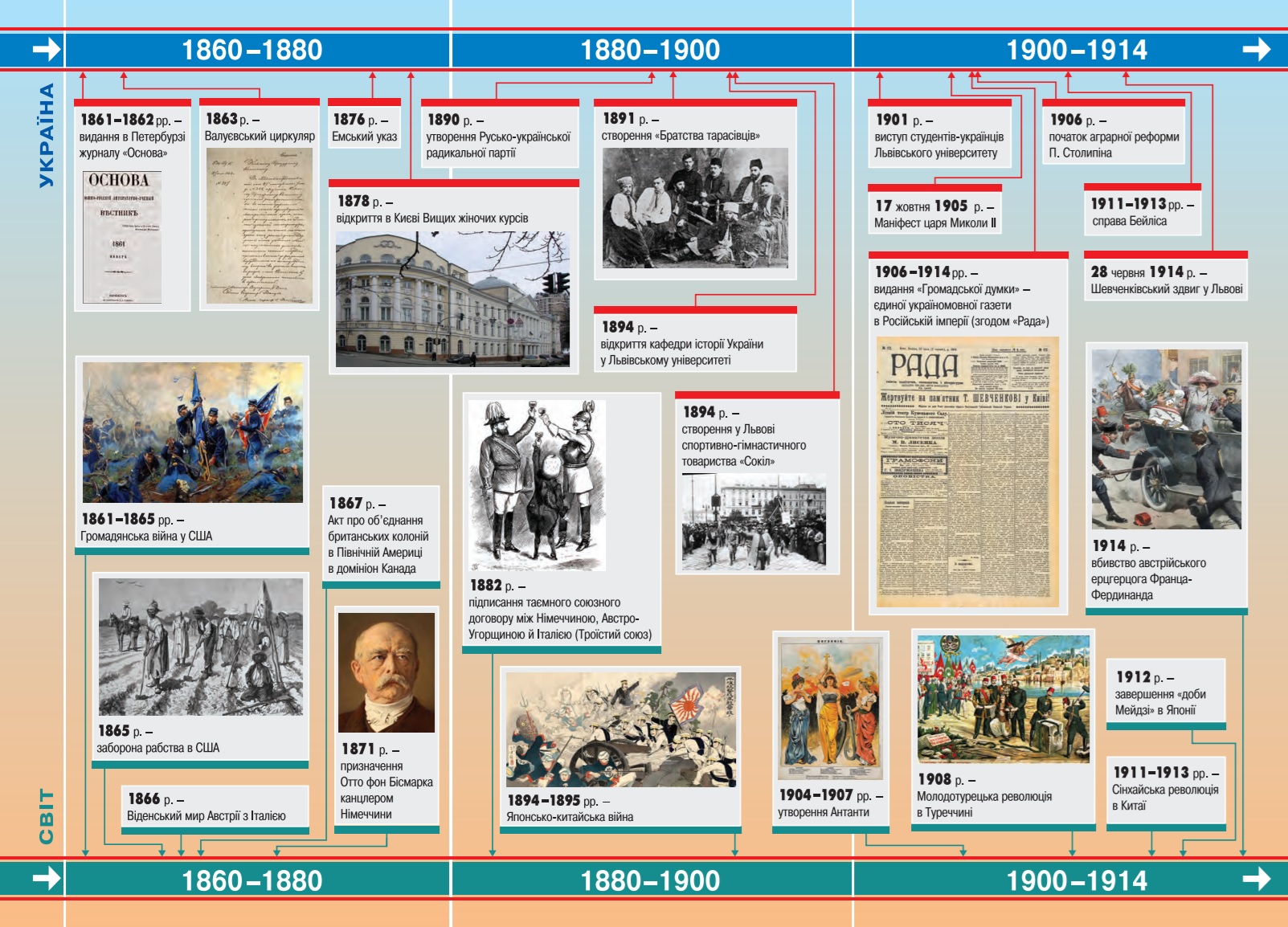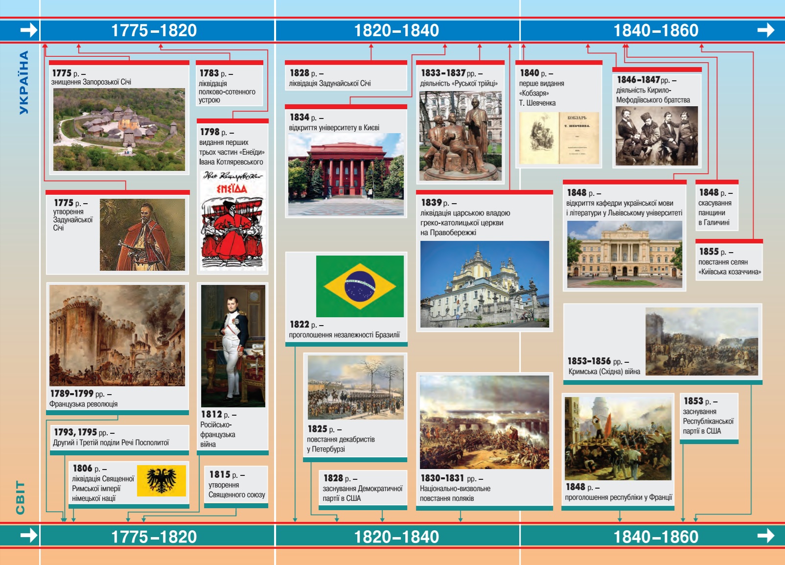 У вітчизняній літературі можна зустріти поняття «українське XIX століття». Воно не суперечить «довгому XIX століттю», про яке йшлося вище. Вітчизняні науковці уточнюють його хронологічні рамки - з 80-х років XVIII ст., від знищення російським імперським урядом Запорозької Січі та козацтва, до 1917 р. - початку Української національної революції, про яку йтиметься вже у 10 класі. Саме Українська революція стала кульмінацією суспільно-політичних перетворень, започаткованих у XIX ст.
