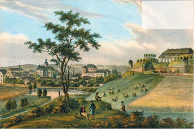 Вигляд міста й замку в Золочеві. Художник К. Ауер. 30-ті роки XIX ст.