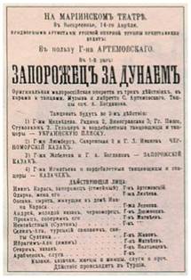Афіша прем’єри опери С. Гулака-Артемовського «Запорожець за Дунаєм»