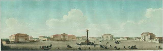 Наприкінці XVIII ст. почали складати генеральні плани міст Російської імперії. В основу їх було покладено класицистичне регулярне планування. Відповідно до нього обов’язковим було виокремлення адміністративного центру з площею, на якій розташовувалися будівлі урядових установ. Квартали мали бути прямокутними. Прикметно, що більшість міст України зберегли класицистичне планування до наших днів. Приміром, на початку XIX ст. класицистичну схему планування центру міста було втілено в Полтаві, яка стала центром губернії. За керівництва архітектора Михайла Амвросимова в 1805-1811 рр. збудовано один із найкращих ансамблів класицизму в Україні - Круглу площу (стара назва - Олександрівська). До центральної площі міста радіально сходяться вісім вулиць. По периметру зведено адміністративні споруди - будинок губернських присутственних місць, будинок генерал-губернатора, дворянського зібрання, поштамту тощо.
