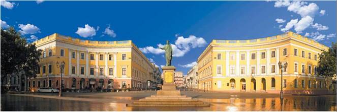 Адміністративно-культурний центр Одеси - групу площ, пов’язаних із Приморським бульваром, - збудовано як високохудожній ансамбль у стилі класицизму. Приморський бульвар - фасад міста. Він з’єднує центральну частину міста з морем велетенськими сходами (тоді 199, нині 192 сходинки). Композиційним центром бульвару стала напівкругла площа з пам’ятником градоначальникові та генерал-губернатору Арману Еммануелю де Рішельє.