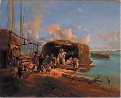 Продаж сіна на Дніпрі. Художник І. Сошенко. 1857 р.