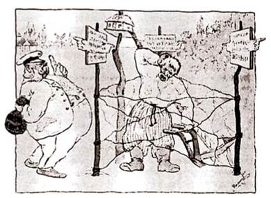 Карикатура на селянську реформу 1861 р. Український сатиричний журнал «Шершень». 1906 р.