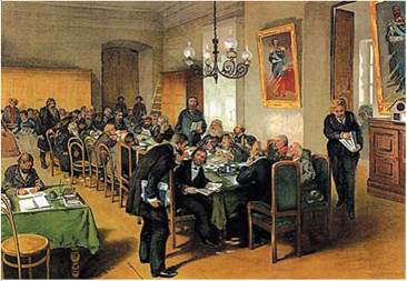 Повітове земське зібрання в обідню пору. Художник Г. М’ясоєдов. 1872 р.