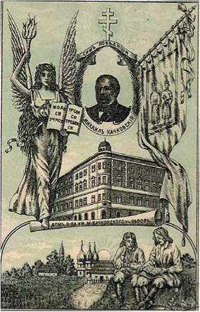 Рекламна листівка про створення москвофілами Товариства ім. М. Качковського