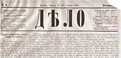Сторінка газети «Діло». 1880 р.