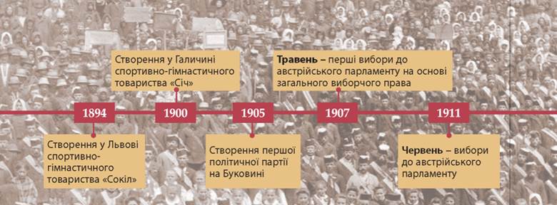 • Перші вибори до австрійського парламенту на основі загального виборчого права • створення у Львові спортивно-гімнастичного товариства «Сокіл» • створення спортивно-гімнастичного товариства «Січ» у Галичині.