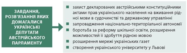 Проаналізуйте схему на с. 231 і дайте відповіді на запитання. Поміркуйте, яке із завдань, що їх прагнули розв’язати парламентським шляхом українські депутати, було найважливішим для української інтелігенції, духовенства, селян, робітників. Свої міркування підтвердіть аргументами. Розв’язання якого із завдань уважаєте найважливішим для суспільно-політичного життя західноукраїнських земель початку XX ст.?