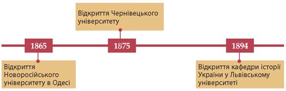 • Відкриття кафедри історії України у Львівському університеті • відкриття Новоросійського університету • відкриття Чернівецького університету.
