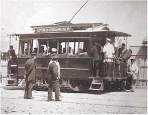 Один з перших місяців роботи електротрамвая 1-го маршруту «Царська площа - Олександрівська площа» (нині - Європейська - Контрактова)