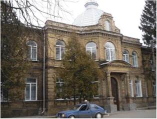 Колишня земська лікарня в місті Ромни Сумської області. Архітектор Костянтин Сроковський. 1905-1907 рр. Сучасне фото
