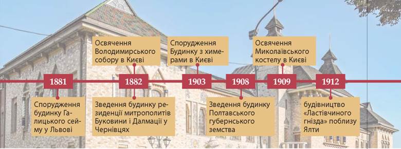При будівництві різних споруд в той час використовували різні стилі. Для церков обирали візантійський стиль, театри будували в ренесансному, особняки - у романському, синагоги - у мавританському. Хоча такий підхід і не був загальноприйнятим. Приміром, у Києві у стилі французького ренесансу споруджено будівлю Національної опери (за проектом петербурзького архітектора Віктора Шретера). У 1899-1909 рр. архітектор Владислав Городецький у неоготичному стилі спорудив Миколаївський костьол.