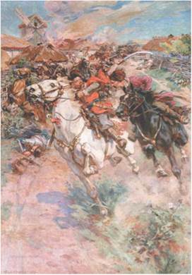 Бій Богуна з Чарнецьким під Монастирищем в 1653 р. Художник М. Самокиш. 1931 р.