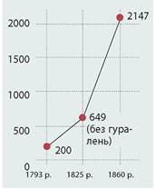 У містах України в 1825 р. було 3662 крамниці, в 1861 р. - 15 089.