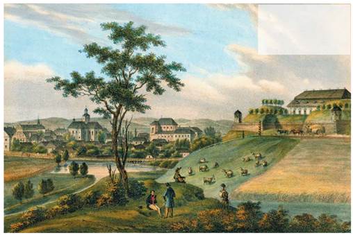 Вигляд міста й замку в Золочеві. Художник К. Ауер. 30-ті роки XIX ст.