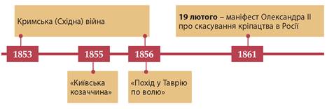 • «Київська козаччина» • початок Кримської війни • оприлюднення маніфесту царя Олександра II про скасування кріпацтва.