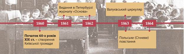 Відчутним ударом для українського руху був циркуляр, який у 1863 р. підписав міністр внутрішніх справ Петро Валуєв. Це таємне розпорядження містило наказ заборонити видання шкільної та релігійної літератури українською мовою. Фактично з 1863 р. видання книг українською мовою у межах Російської імперії було припинено.