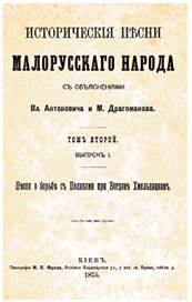Титульний аркуш «Історичних пісень українського народу». 1875 р.