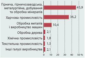 Проаналізуйте діаграму і дайте відповіді на запитання. · 1. Які галузі переважали в структурі промислового виробництва України на початку XX ст.? · 2. Як діаграма відображає економічну політику Російської імперії щодо України?
