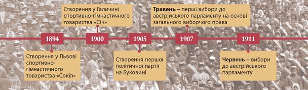 • Перші вибори до австрійського парламенту на основі загального виборчого права • створення у Львові спортивно-гімнастичного товариства «Сокіл» • створення спортивно-гімнастичного товариства «Січ» у Галичині.
