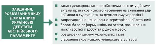 Проаналізуйте схему на с. 243 й дайте відповіді на запитання. Поміркуйте, яке із завдань, що їх прагнули розв’язати парламентським шляхом українські депутати, було найважливішим для української інтелігенції, духовенства, селян, робітників. Свої міркування підтвердіть аргументами. Розв’язання якого із завдань уважаєте найважливішим для суспільно-політичного життя західноукраїнських земель початку XX ст.?