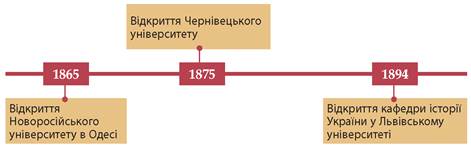 • Відкриття кафедри історії України у Львівському університеті • відкриття Новоросійського університету • відкриття Чернівецького університету.