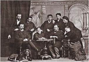 Театр корифеїв. Перший ряд зліва направо: М. Садовський, Г. Затиркевич-Карпинська, М. Кропивницький, М. Заньковецька