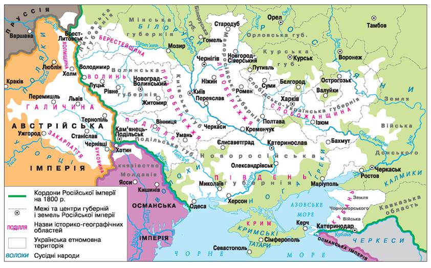 § 2. Українські території у складі Російської та Австрійської імперій: адміністративно-територіальний устрій та населення