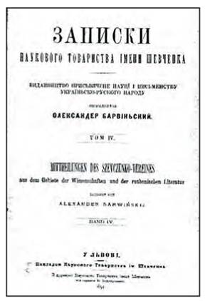 Обкладинка одного з видань «Записок Наукового товариства ім. Т. Шевченка». 1894 р.