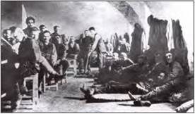 4. Наростання революційних подій. Грудневі збройні повстання. Восени 1905 р. спалахнули революційні виступи на флоті та в армії. 11—16 листопада 1905 р. відбулося повстання моряків на головній базі Чорноморського флоту в Севастополі, очолюване лейтенантом Петром Шмідтом. Розпочалося воно на крейсері «Очаків», до якого приєдналися 12 кораблів. Повстання було придушене, а його керівника за вироком суду розстріляно.