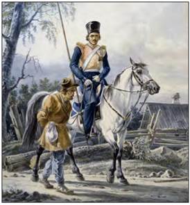 Козак, що конвоює селянина. Художник О. Орловський. 20-ті рр. XIX ст.