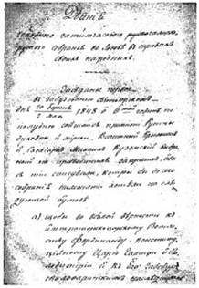 Перша сторінка протоколу засідань Головної руської ради. 1848 р.