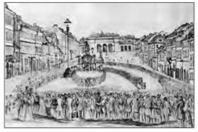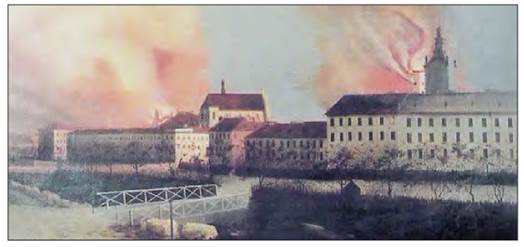 Пожежа у Львові в 1848 р., викликана обстрілами австрійської артилерії. Художник Л. Яблоновський
