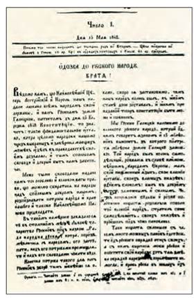 Із відозви Головної руської ради до руського народу, опублікованої 15 травня 1848 р. в газеті «Зоря Галицька»