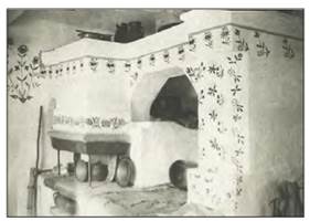У кімнаті завжди є піч. Хати заможніших селян часом просторіші, кімнати не такі тісні, у них більше порядку і чистоти, досить часто вони побілені всередині і ззовні. Внутрішнє впорядкування кожної хати майже скрізь однакове. В усіх помешканнях завжди можна бачити в кутку кімнати напроти дверей грубо намальовані образи святих... прикрашені натуральними висушеними квітами та білими рушниками, вишитими червоними узорами. У їхніх помешканнях зовсім немає меблів, хіба що іноді шафа і декілька простих стільців.