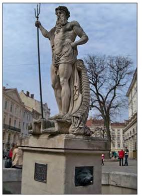Фонтан Нептуна на площі Ринок у Львові. Скульптор Г. Вітвер