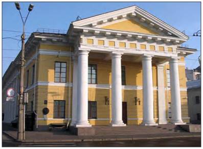 Житомир. Будівля колишнього міського театру, побудованого в 1855 р. за проектом архітектора І. Штрома (зараз — будівля філармонії)