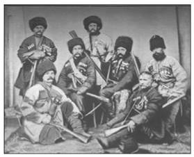 Воїни Чорноморського козацького війська, які відзначилися під час оборони Севастополя в 1854—1855 рр. Між 1855 і 1860 рр.